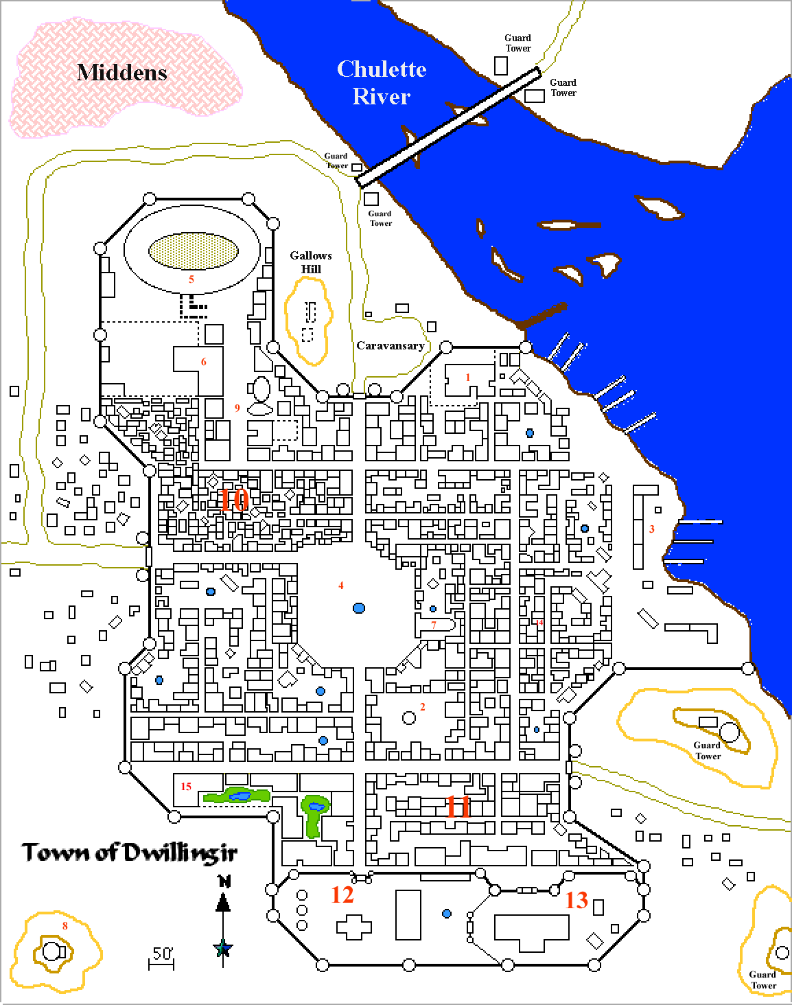 Below is a larger image of Dwillingir, with some key spots labelled.
