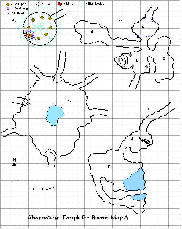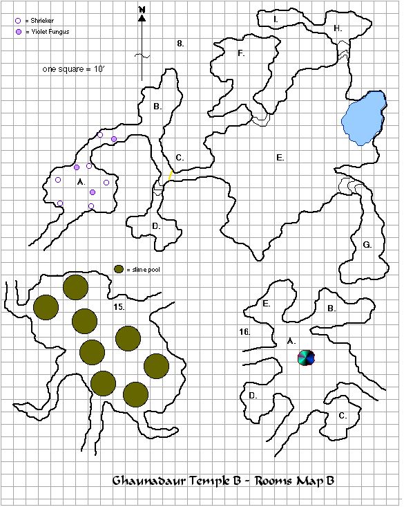 The Blessing of Ghaunadaur: Ghaunadaur has cast a special blessing over this entire temple complex. By way of it, all molds, oozes, slimes, jellies, fungi, and puddings (including the alkilith tanar'ri) are under the effects of a Haste spell. This is not a magical power or ability, but rather the hand of the Maug guiding these creatures and speeding up their metabolism while in the temple. A Slow spell will negate the effects of the haste for as long as the slow spell lasts. This blessing does not affect other denizens of the temple, such as the drow. Monster statistics do not reflect the effects of this blessing.
