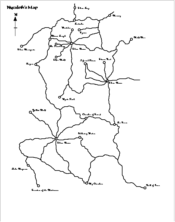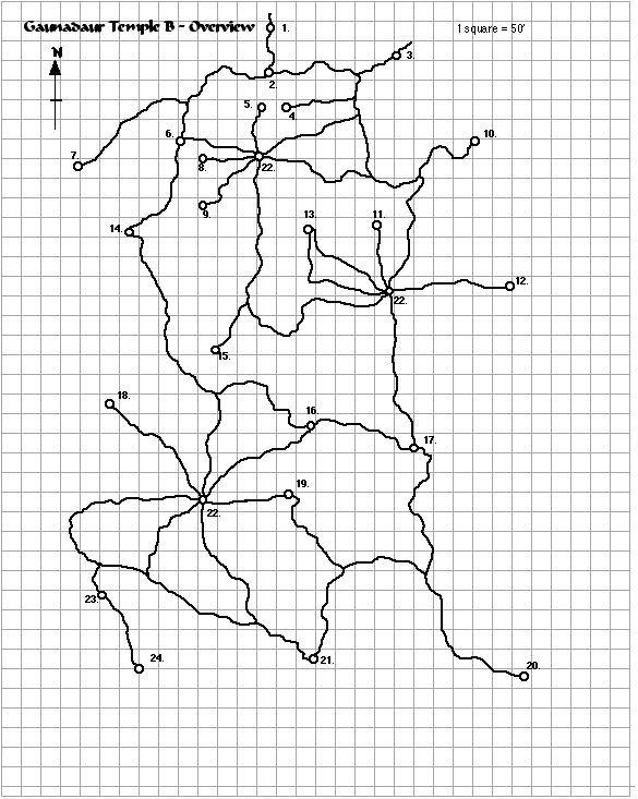 The Teleport pillar in area U of Room 24 will teleport those touching it and not whispering the proper command word to this location. It is a large cave some 10 miles to the northeast of the complex and is accessible to the maze of small passages that make up the off-road areas.