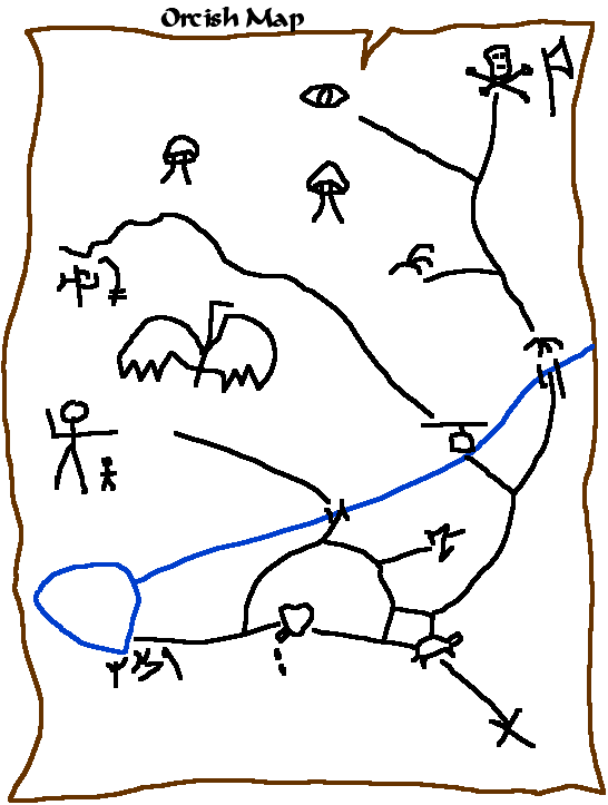 Once the party has been fully outfitted and equipped, the Council will meet one last time to officially charge them with their task. Speeches concerning the graveness of their situation will be made, along with pleas that the party seek to escape trouble rather than fighting its way through it. A prayer to the Slumbering Gods will be given, and then the party will be taken out of the clan halls by a secret exit. They will have in their possession a map showing the way to an entryway into the drow tunnels. The party will also have a "no questions asked" pass given to them by the dwarf King.