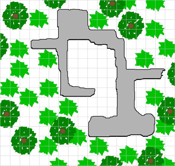 From the outside, the cave opening is high on a steep slope and somewhat remote. The curtain of ivy and vines conceals the opening as well, making it very difficult to pick out at a distance from the rest of the jungle growth. A DC 15 Spot check is required to notice the opening from the outside (modified by distance of course).