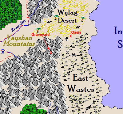 The PCs are in the Wylag Desert of the Morakki Lands.