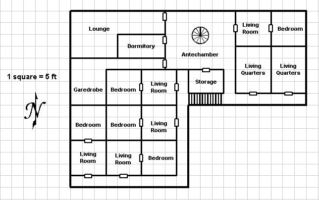 Because this scenario is not an exploration mission of the House, but a military style raid, a full and complete description of every room of the House is not given, nor are statistics given for all of the House members. Instead, the basic function of the room is given, along with a very brief description. Any unusual or pertinent details are also outlined. Unimportant house members are simply given a class and level and it is up to the DM to provide statistics as necessary. As most of these are low level and probably more interested in fleeing or surrendering than fighting, they present almost no challenge to the PCs. If the PCs are intent on actually exploring the House or looting items, the DM would be well-served to simply assign an overall gold piece value to the loot and leave it at that.