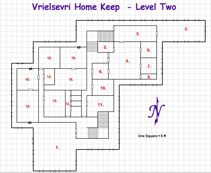 This encounter involves a large patrol in force from House Vrielsevri that patrols the tunnels around the Home Cavern. There is usually only one such patrol out at any given time, as House Vrielsevri does not have the manpower to send out multiple patrols. The group ranges about 1-2 miles out from the Vrielsevri Home Cavern, and their patrols usually last a day or two.