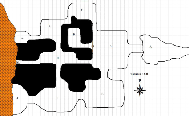 If He-Who-Walks is with the PCs, he can describe the general layout of the tunnels, as he is quite familiar with them. If asked, he will recommend the most direct route to the lair (the westernmost passageway).