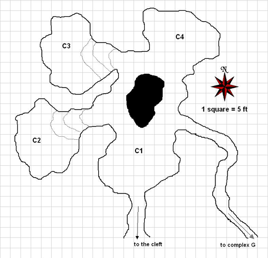 This complex is the lair of Mizfirzotin, the leader of the worshippers and of the expedition into the Hurlotzin Lands. Unless otherwise stated, all areas herein are 15 ft high. Due to the proximity of the areas of the complex to one another, combat in one area is likely to rouse the entire complex, which will come to the scene of any disturbances.