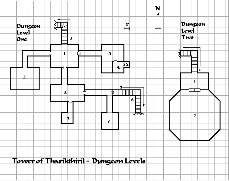 This scenario can take place after the scenario entitled "A Taste of Honey", or it can stand on its own. During "A Taste of Honey", the party will have heard of rumours of the tower from Adazil, the dwarven merchant who hired them to gather giant bee honey. In fact, if they chose the westernmost route to the bee hive, they may have run afoul of Tharikthiril's groundlings and even been lured into the tower at some point.
