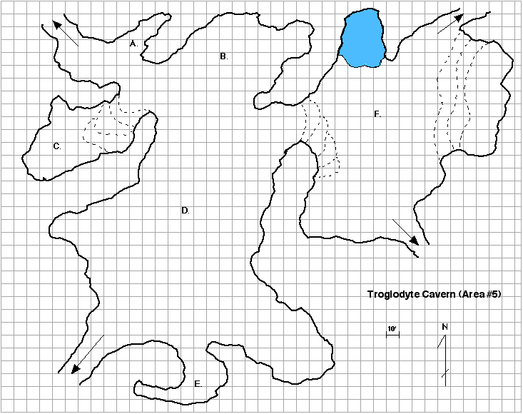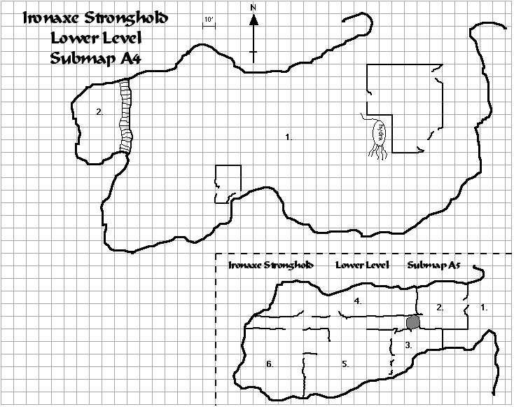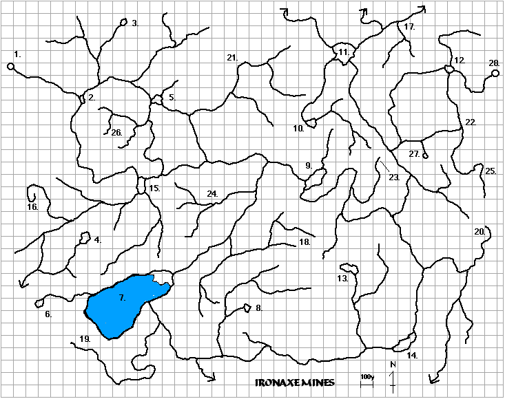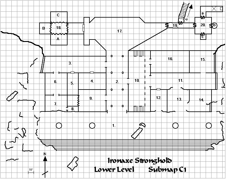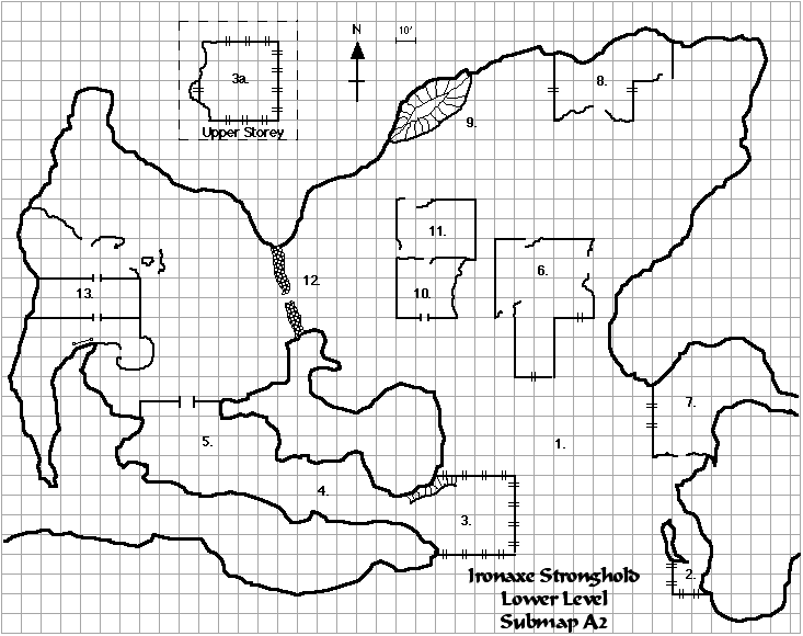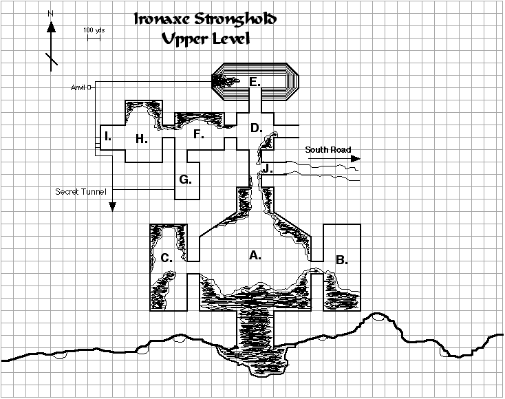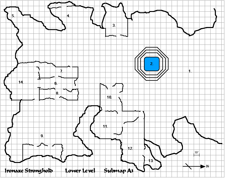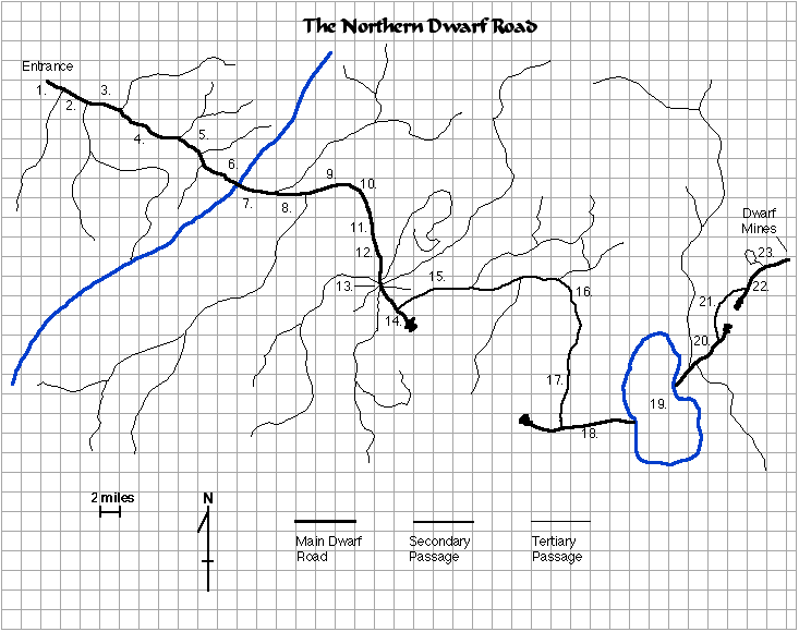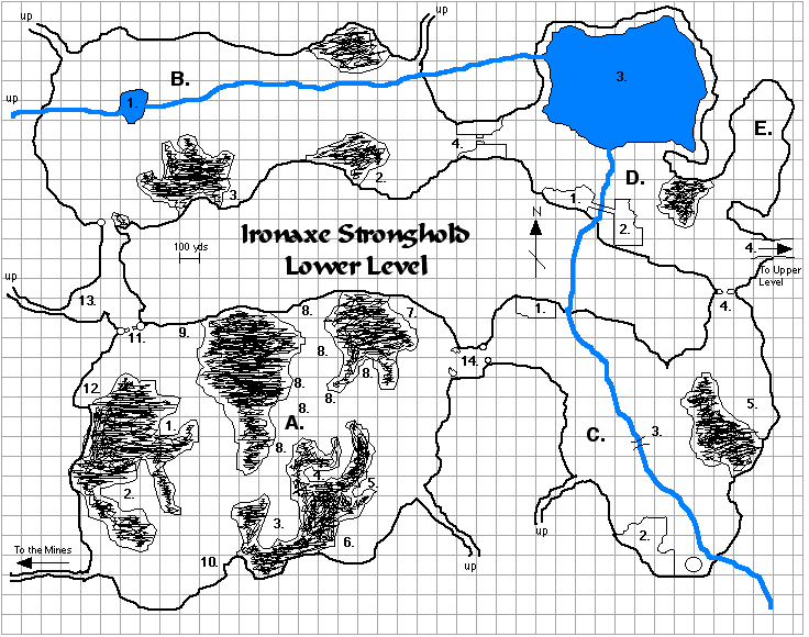 The northern branch continues for another 250 yards before turning west and then north again as it passes just behind the dwarven palace (area I on the Upper Level map).