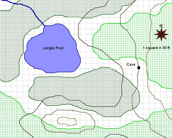 As this scenario is taking place during the summer, the DM should assume a 25% chance that on any given day the heat will be equivalent to Hot (see Sandstorm page 12). Although the jungle canopy keeps out much of the sunlight, the humidity serves to make the jungle stifling in very hot summer days. On these Hot days, PCs will suffer the effects listed in Sandstorm unless they take the necessary precautions. As this heat is not a result of direct exposure to the sun, protections like parasols will not work to mitigate this heat. Endure elements spells will mitigate this effect entirely. DMs should also note that wearing armour can exacerbate the heat as mentioned in Sandstorm.