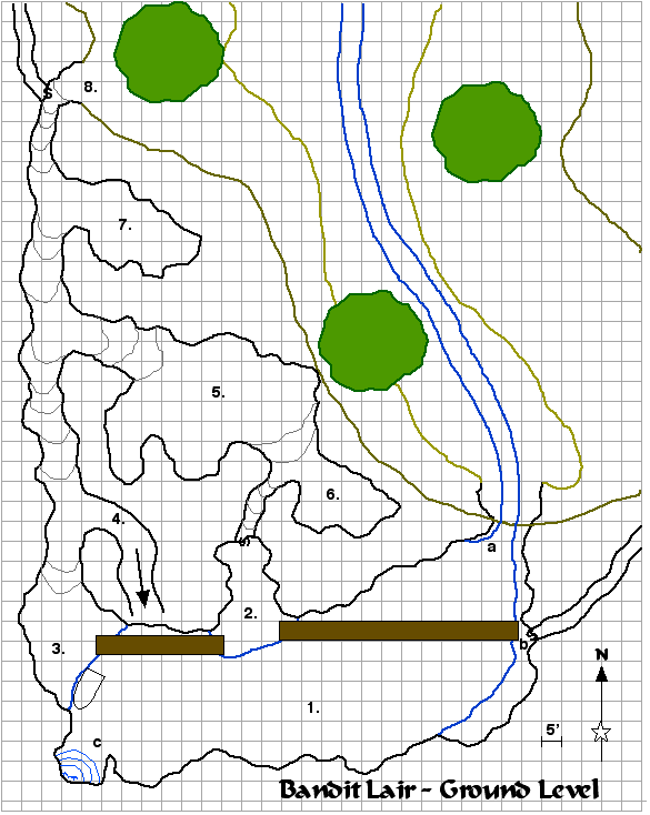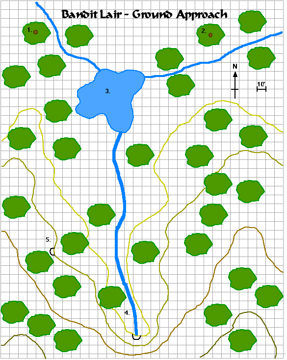 Note: This scenario includes assumptions that the bandits in "Witness Protection" have keys to their personal possessions on their persons (usually on a leather thong around their necks). However, these keys are not specifically mentioned in that scenario. Therefore, DMs running both scenarios should either describe the presence of the keys on the bandits in that scenario, or simply assume that the PCs found the keys and gathered them up and have brought them with them to the raid on the Bandit Lair.