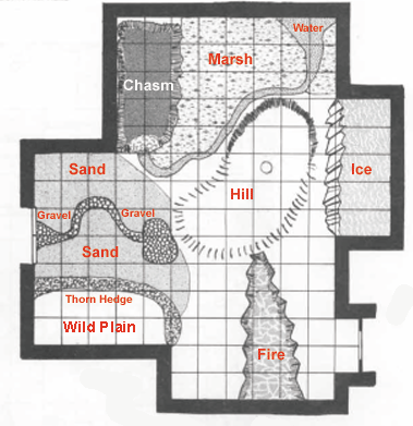 This entire chamber is considered to be covered in dense rubble (2 squares of movement to enter a square with dense rubble; adds 5 to the DC of Balance and Tumble checks, and it adds 2 to the DC of Move Silently checks).