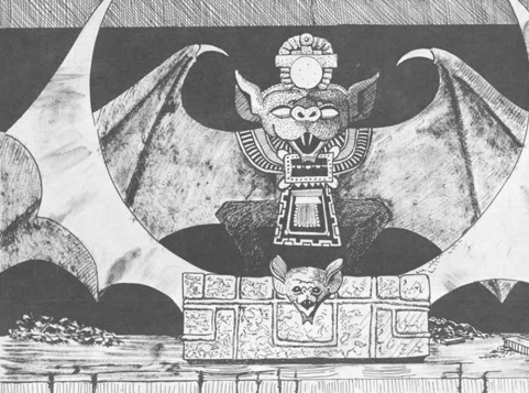 Over the next 50 years Tamoachan grew and prospered, and Tloques plumbed the depths of ancient naga lore, delving into the elder serpent ruins and retrieving various items of power and texts and grimoires detailing the research conducted by the ancient nagas, including the rites and rituals to attain the powers of the dread necromancer class (see Heroes of Horror page 84). This lore naturally lead him to the secret worship of Camazotz, the God of Bats and undeath. Camazotz was a forbidden god, for he was associated with the undead and necromancy.