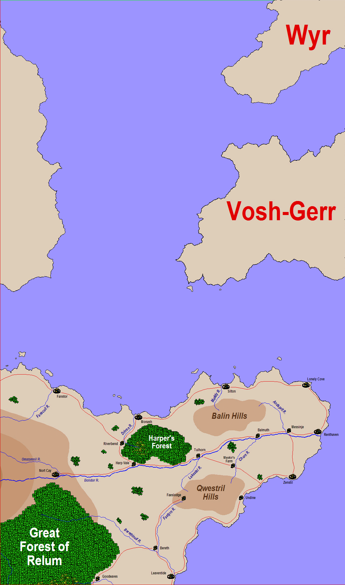 The Kingdom of Relum is the only one not ruled entirely by humans. The elves of Relum, having naturally gravitated to the largest forest on Onlor, were not as awed by the human's leadership and warfare abilities. Nevertheless, they did not want to have the responsibility of running Relum entirely on their own. So, a compromise was reached soon after its formation.